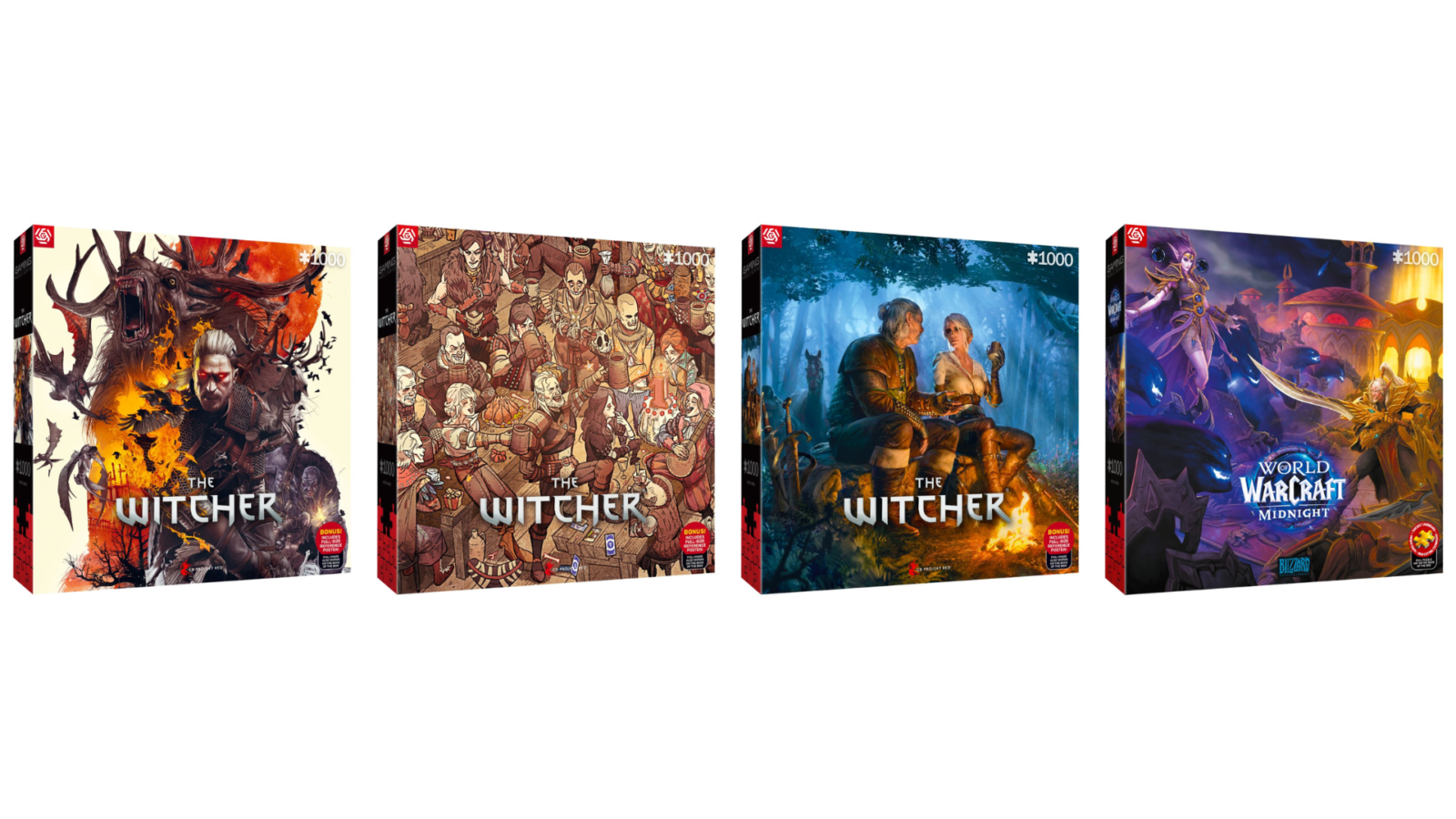 Seria Gaming Puzzle rozszerzy się o kilka zestawów inspirowanych światem Wiedźmina. Wśród nich znajdziemy między innymi scenę karczmianej uczty z Geraltem i jego przyjaciółmi (The Witcher Birthday), spokojny moment przy ognisku z Ciri i Vesemirem (Journey of Ciri) czy zestaw przedstawiający liczne potwory z Kontynentu (The Witcher Monsters).