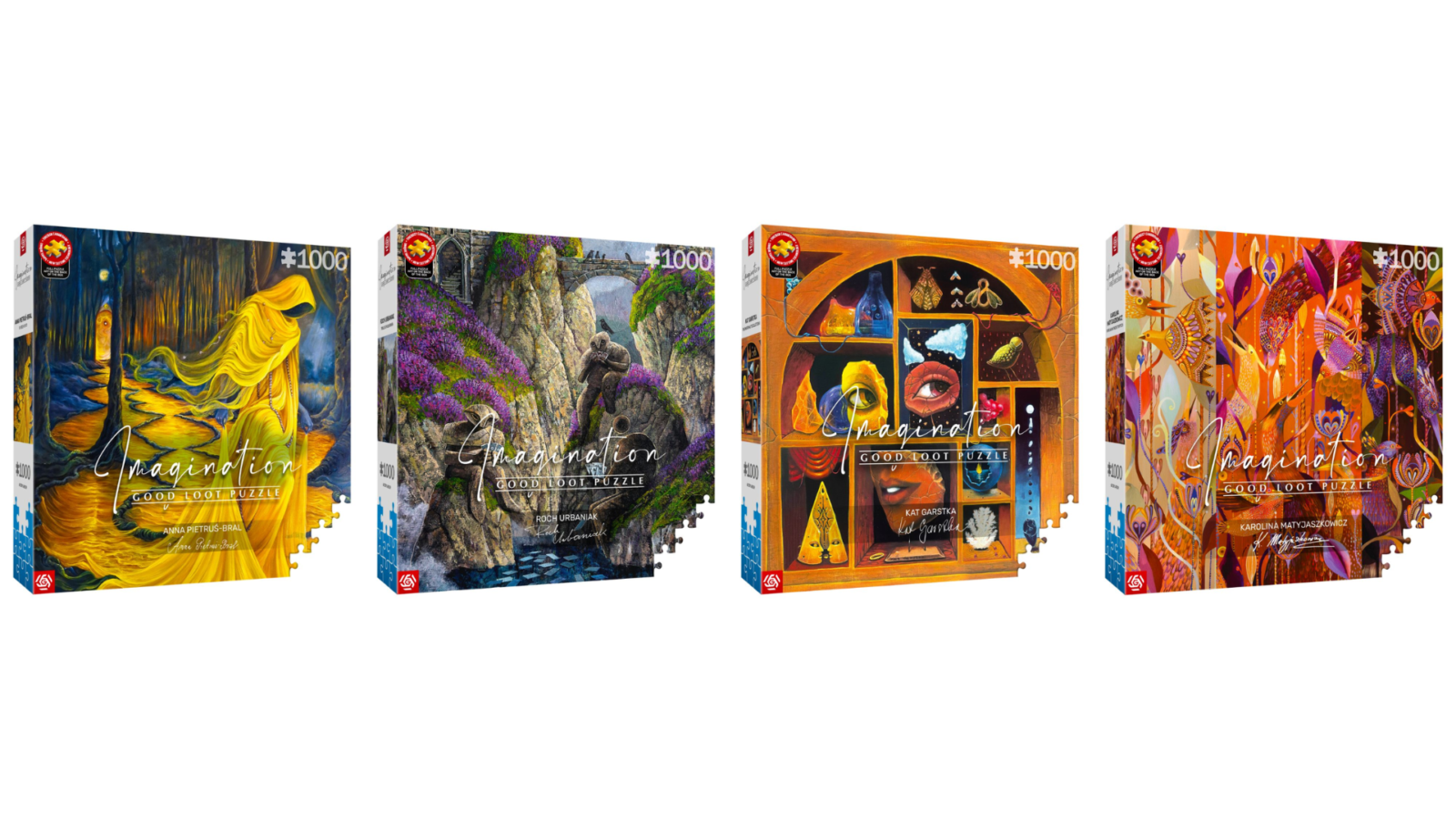 Nowe zestawy z serii Imagination Puzzle powstały we współpracy z uznanymi polskimi artystami. W kolekcji pojawią się prace m.in. Anny Pietruś-Bral, Kat Garstki, Karoliny Matyjaszkowicz oraz Rocha Urbaniaka. Każdy z zestawów liczy 1000 elementów i przedstawia autorskie ilustracje inspirowane mitologią, snami czy kulturą ludową.