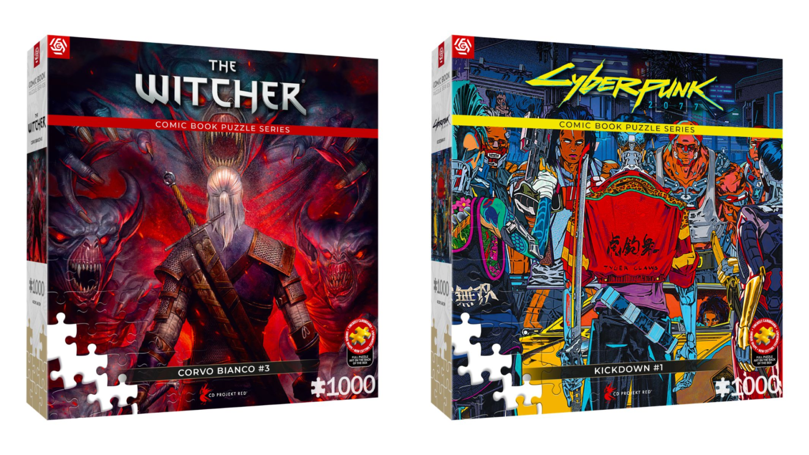 Seria Comic Book Puzzle powiększy się o dwa nowe wzory: The Witcher: Corvo Bianco, przedstawiający Geralta w jego winnicy znanej z komiksów, oraz Cyberpunk 2077: Kickdown, który przenosi graczy na ulice Night City i do świata nielegalnych wyścigów.