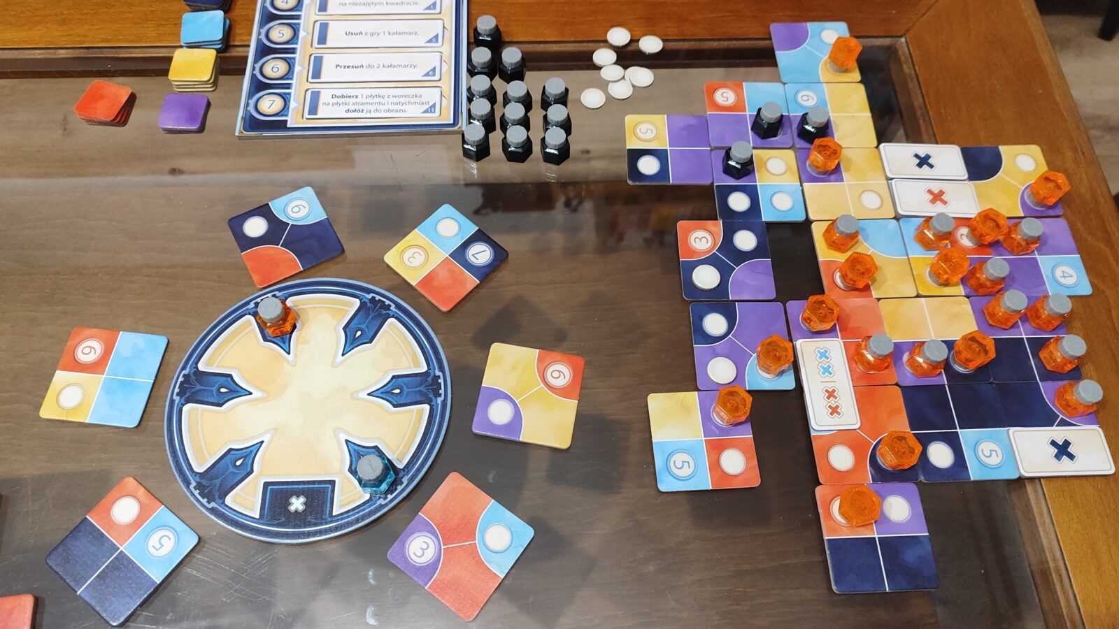 Podoba mi się ten element, bo wymusza on na graczu myślenie strategicznie i kilka kroków do przodu. Czasem warto przesunąć się o mniejszą liczbę pól i wziąć kafelek, który nie do końca nam pasuje i liczyć na to, że pojawi się coś lepszego.