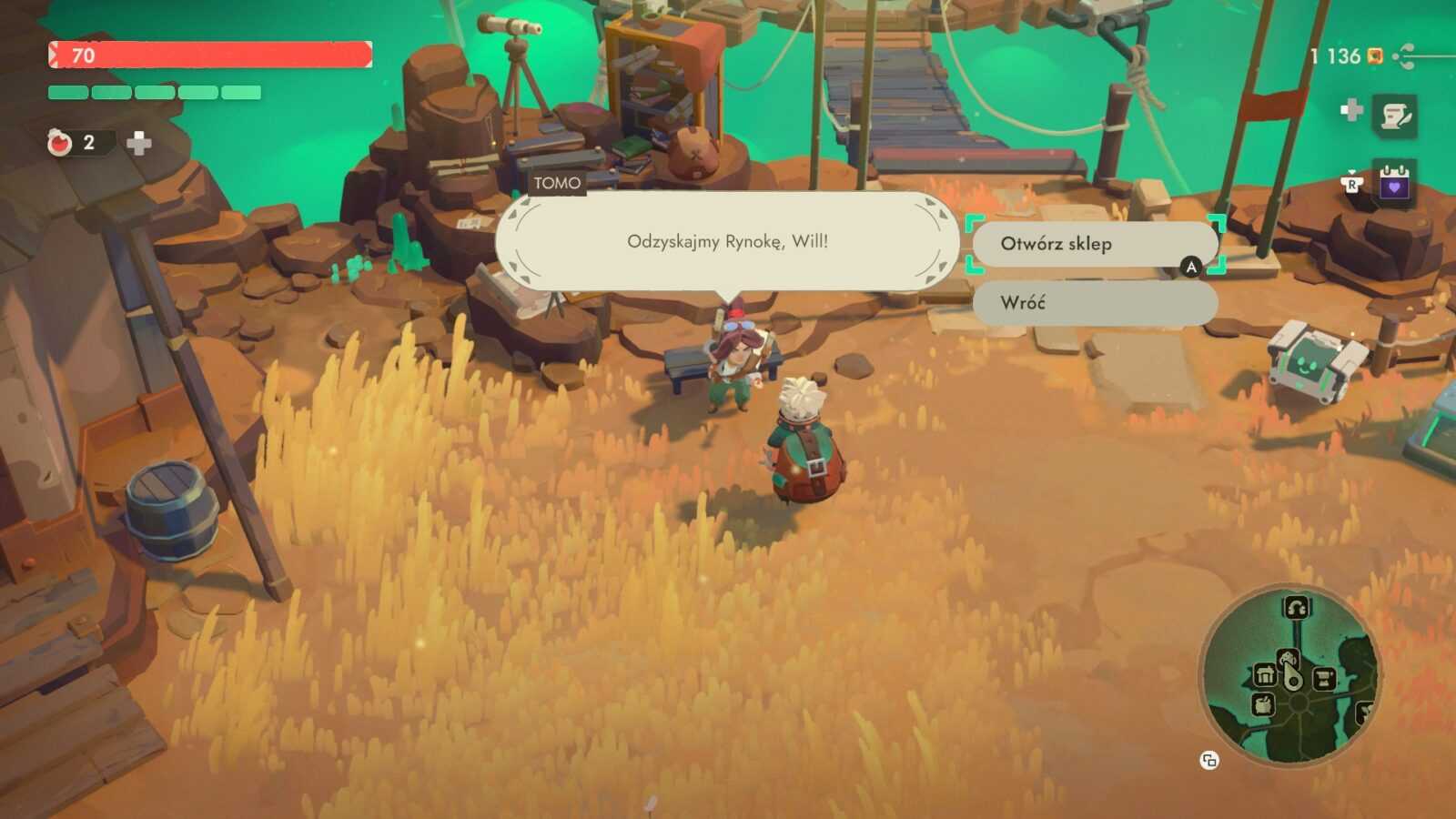 Największą zmianą w Moonlighter 2: The Endless Vault jest oprawa graficzna. Twórcy odeszli od klasycznego pixel artu na rzecz stylizowanego 3D. Choć początkowo miałam obawy, czy seria nie straci swojego uroku, nowa oprawa szybko mnie do siebie przekonała. Stylizacja nadal nawiązuje do oryginału, ale dzięki trzeciemu wymiarowi lokacje są bardziej szczegółowe, a animacje postaci i potworów znacznie płynniejsze.