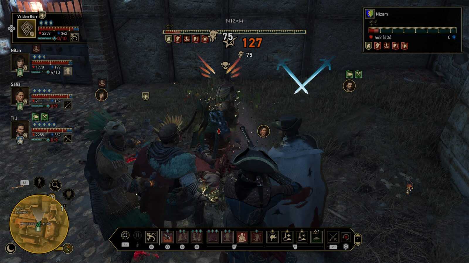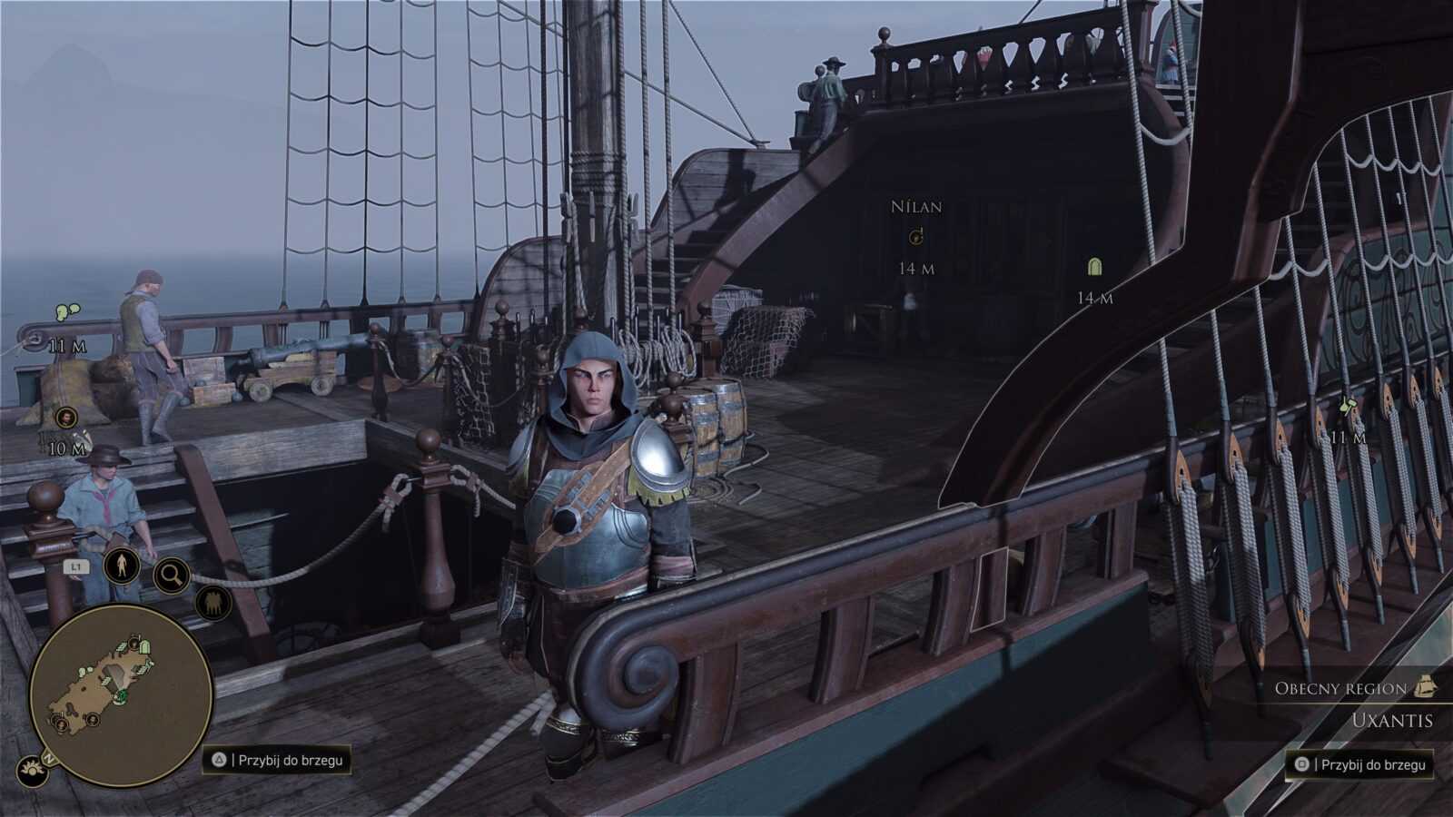 Z kolei interfejs ekwipunku jest momentami irytujący. Sortowanie przedmiotów resetuje się przy każdej zmianie postaci. Spędzamy więc długie minuty, upewniając się, że nasi towarzysze nie biegają w „obrzyganym kaftanie pijanego marynarza” (który, o ironio, często bywa lepszy od pomarańczowych artefaktów). System porównywania przedmiotów za pomocą piktogramów również bywa zawodny, sugerując czasem gorszy sprzęt tylko dlatego, że ma więcej nieistotnych premii pasywnych (+2% do kryta, Wasza Greedfallowość jest zbyt łaskawa).