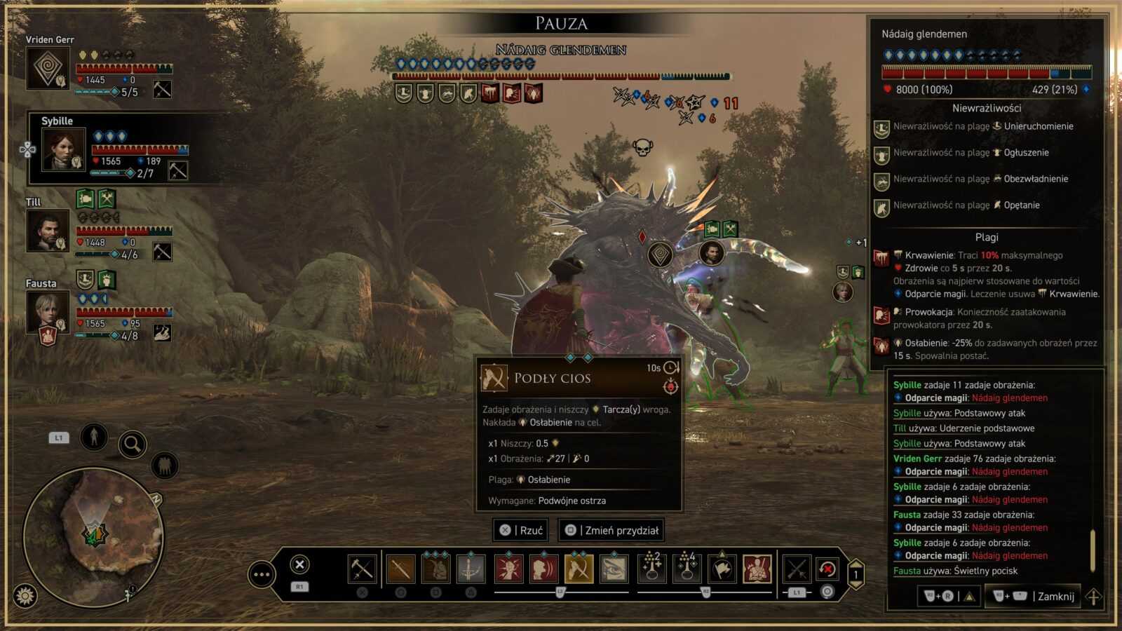 Opowieść ma swoje momenty, ale podobnie jak cała gra – jest strasznie nierówna. Były chwile, gdy nie mogłem oderwać się od konsoli, a innym razem ziewałem z nudów, próbując dopchnąć jakiś wątek poboczny do końca. Nie pomogło również to, że zbugowały mi się trzy zadania (albo moja postać nie mogła ich ukończyć z powodu braków w talentach) – wszystkie dotyczyły tropienia. W każdym przypadku spędziłem blisko godzinę, krążąc i przeszukując obszary wskazane przez zleceniodawców. Moje poświęcenie poszło na marne, a ja z ciężkim sercem odpuszczałem te misje, zważywszy na ich opcjonalny charakter.