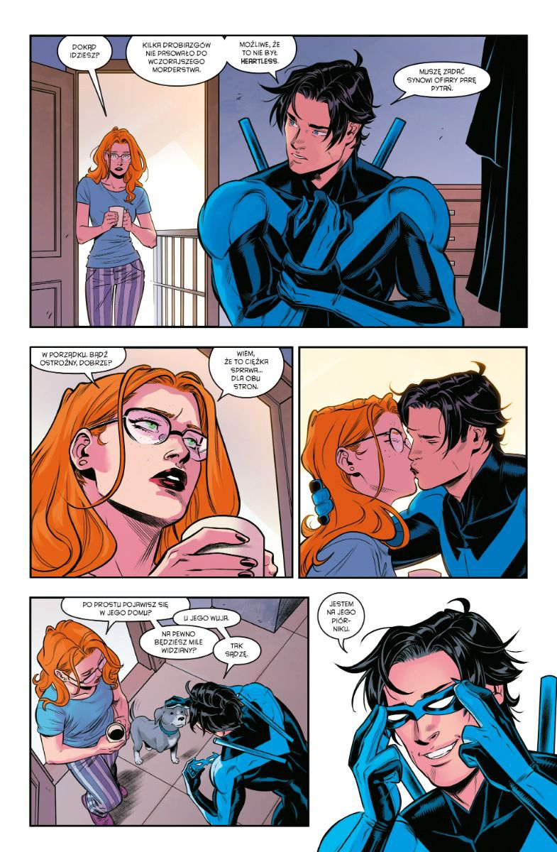 Tymi słowami zamyka się arcyciekawy cykl komiksowy. Nie zaczynał się on origin story bohatera, jednak sprawnie prowadzona fabuła pozwala czytelnikowi na zapoznanie się z przeszłością ulubieńca, a w przypadku dzieł Toma Taylora nierzadko wydarzenia z dzieciństwa i młodości protagonisty rzutują się na jego dorosłe życie pełne walk z przestępcami i złoczyńcami. Muszę przyznać, że naprawdę dobrze wypadło zestawienie dobrodusznego i rozgadanego pierwszego Robina z Heartlessem – postacią nomen omen bez serca, która oprócz nieustannych knowań wycina serca kolejnym ludziom, bez znaczenia, po której stronie barykady stoją. Osobiście ucieszył i rozbawił mnie też jeden z kadrów w początkowej części albumu. Okazuje się bowiem, że Grayson za młodu czytywał Tolkiena. Proszę więc zobaczyć, na jakich ludzi wyrastają czytelnicy książek Profesora.