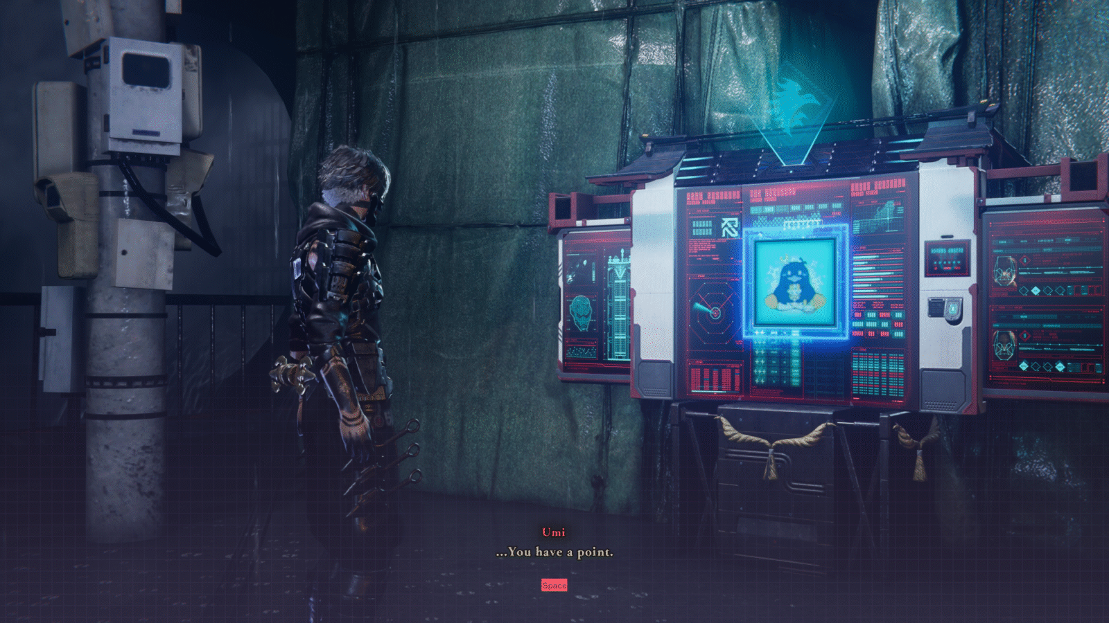 Fabuła gry jest po prostu poprawna. Nie gra ona pierwszych skrzypiec w tym przedsięwzięciu, więc nie jest to dużym problemem. Postać Yakumo niestety nie wszystkim przypadnie do gustu. Jest to stereotypowy nastoletni edgelord, którego całą osobowością jest chęć wykonania zadania za wszelką cenę. O wiele lepiej pod tym względem wypadły postacie poboczne. Moją ulubienicą szybko stała się Umi – hakerka, będąca również naszym kontaktem, pomagającym nam ukończyć misję. Ma bardzo żywą i wesołą osobowość, dzięki czemu interakcje z nią zawsze cieszą. Są też miłą odskocznią od przesadnie poważnego i posępnego tonu młodego ninja. Choć muszę oddać nieco honoru młodzianowi – pod koniec gry robi się mniej nie do zniesienia.