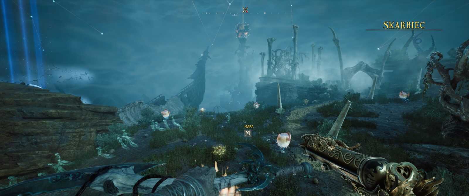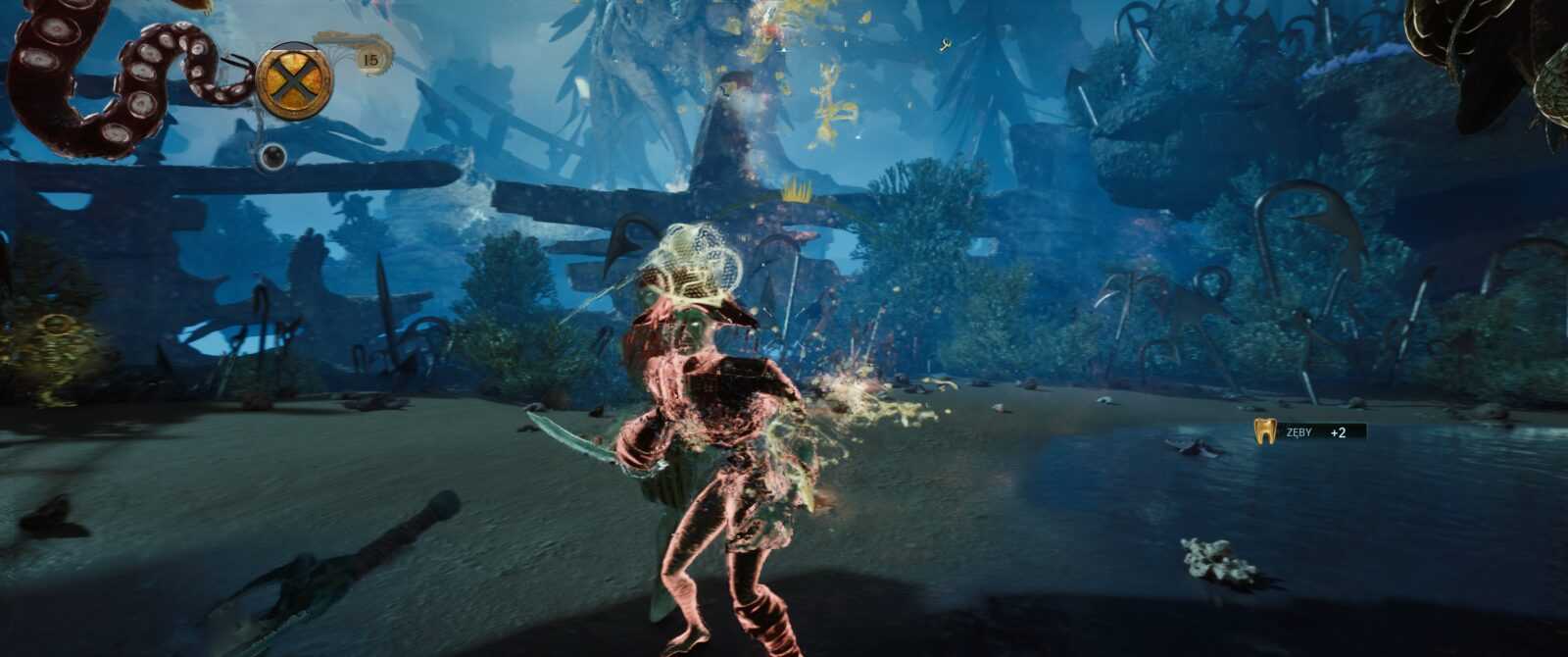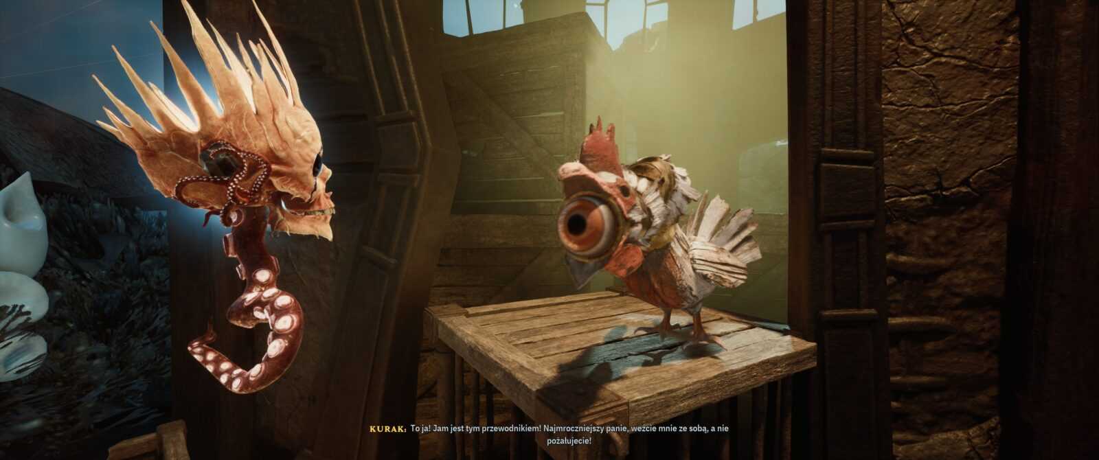 Stylistyka także trafiła w mój gust – czuję tutaj lekką inspirację wizerunkiem Davy’ego Jonesa z Piratów z Karaibów oraz Latającym Holendrem. Wszystko, co widzimy na ekranie, to ciekawa fuzja typowo żeglarskiego ekwipunku połączona z elementami fauny i flory morskiej. Mamy więc statki składające się z kałamarnic czy wielorybów oraz żyjące działa okrętowe, „wyrastające” tu i ówdzie niczym rośliny. Wszystko to sprawia, że kraina The Locker prezentuje się jako żyjący organizm, pełen niespotykanych istot oraz przedmiotów żywcem wyciągniętych z dna morskiego. Samych nawiązań do popkultury także nie brakuje – wyłapałem bezpośrednie odniesienie do chociażby Władcy Pierścieni, a jeden ptak faktycznie przypomina pewnego znanego pirata. Uwielbiam takie smaczki i pożeram je z zawziętością żarłacza białego.