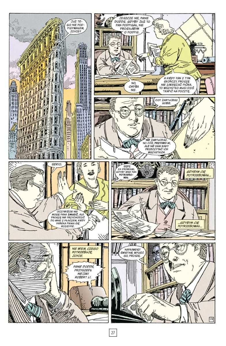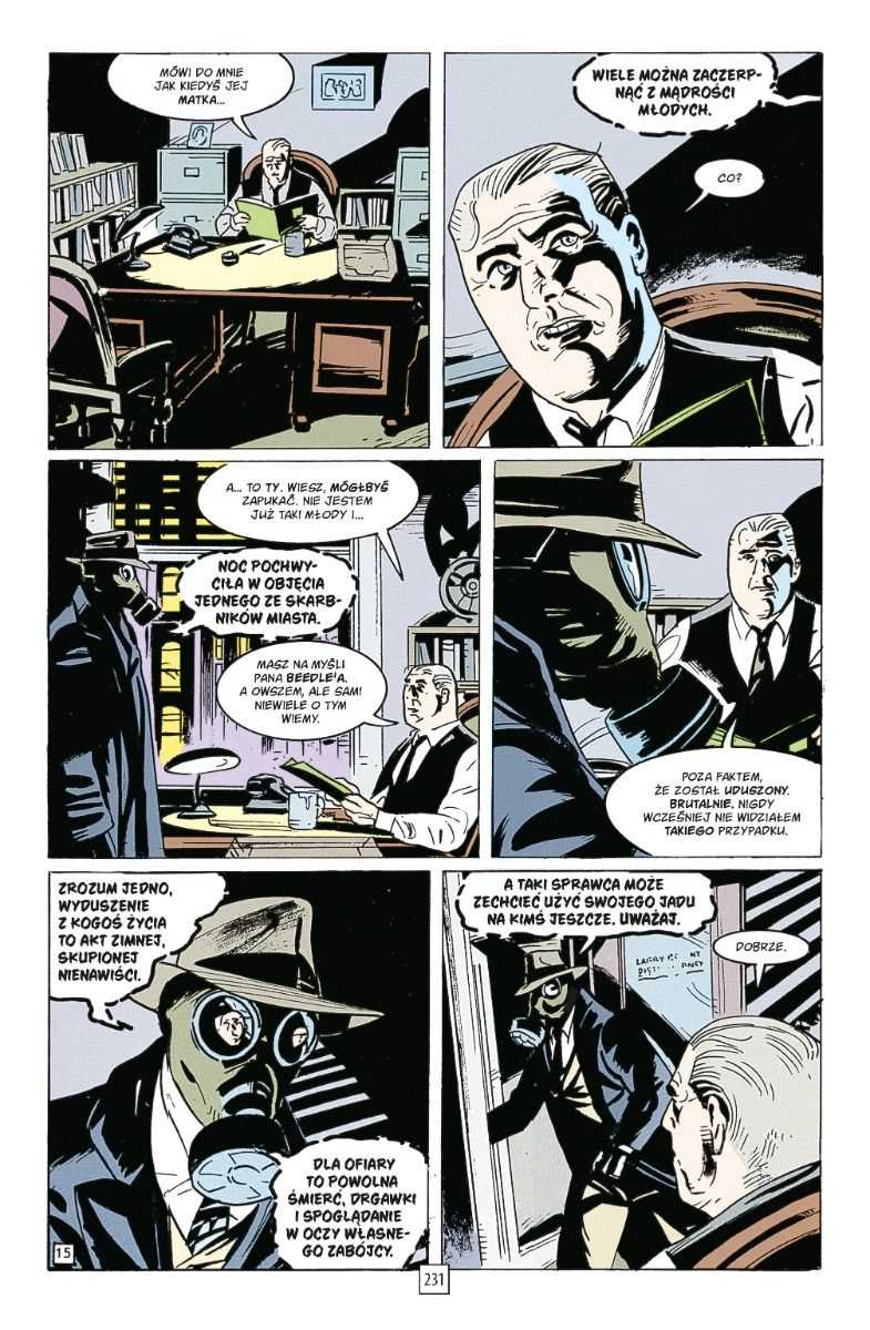 Sandman. Teatr Tajemnic. Tom 3 to wymagający komiks detektywistyczny. Nie uświadczymy tutaj efektownych pojedynków, zamiast tego dostajemy mrok, napięcie i refleksje, które pokazują, jaką cenę płaci się, za bycie superbohaterem. Całość dopełnia warstwa graficzna przygotowana przez Guya Davisa, Warrena Pleece’a i Vince’a Locke’a. Ta estetyka nie jest dla każdego, ale osobiście przyzwyczaiłem się do niej i pasuje mi do klimatu opowieści.