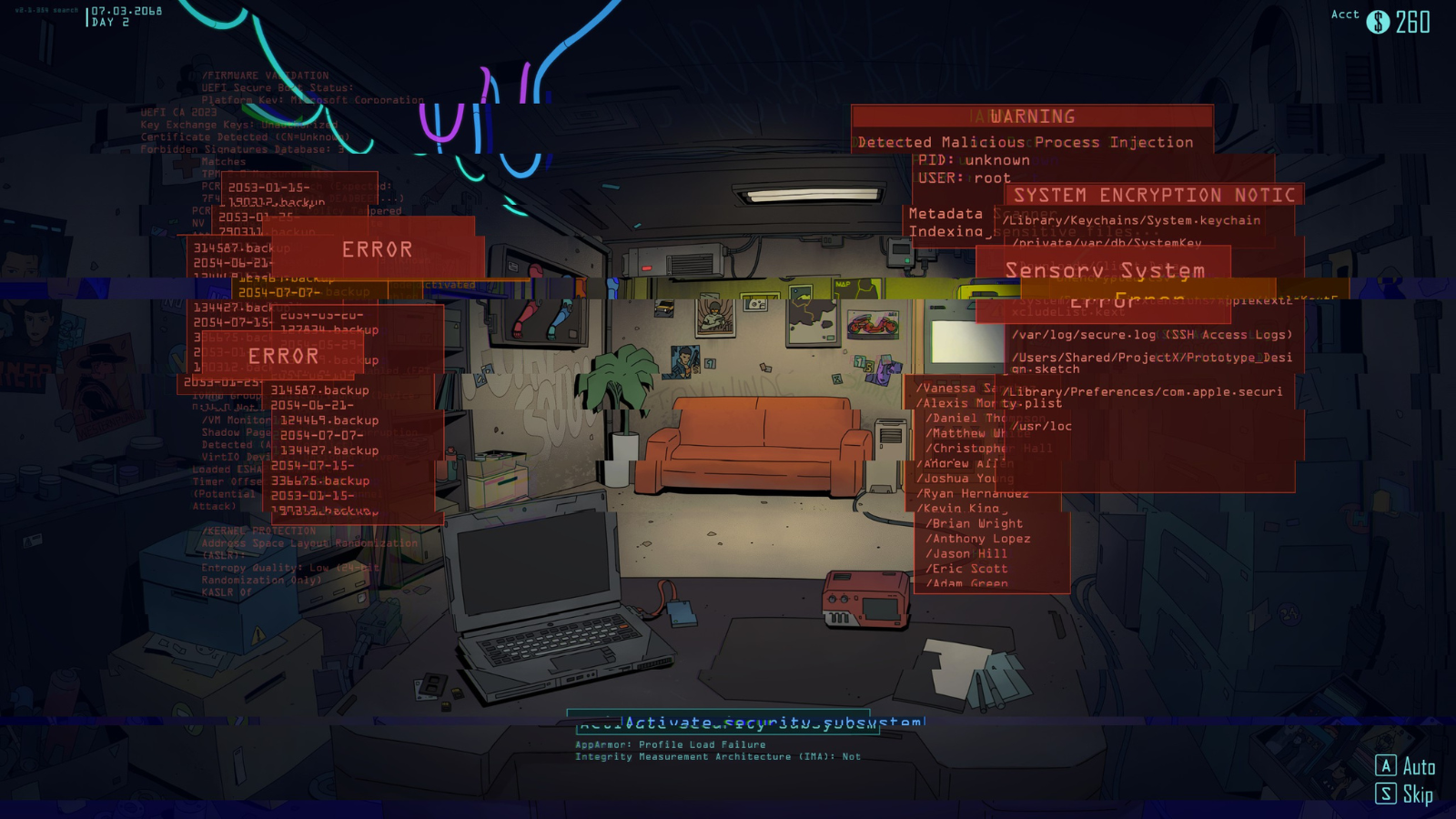 Pod względem klimatu gra trafia w punkt. Neonowe światła, surowe wnętrza warsztatu i cyberpunkowa estetyka budują odpowiedni nastrój. Jeśli spędzasz czas w Night City, powinieneś poczuć się tu znajomo – choć skala jest znacznie mniejsza, a perspektywa bardziej „przyziemna”. Co prawda w obecnej wersji gry praktycznie nie ruszamy się spoza swojego biurka, jednak w nasze progi zawitają przedstawiciele każdej sfery miasta – od wywyższających się korposzczurów, przez brutalnych gangusów, aż po dzieci ulicy walczące o swoje miejsce w społeczeństwie.