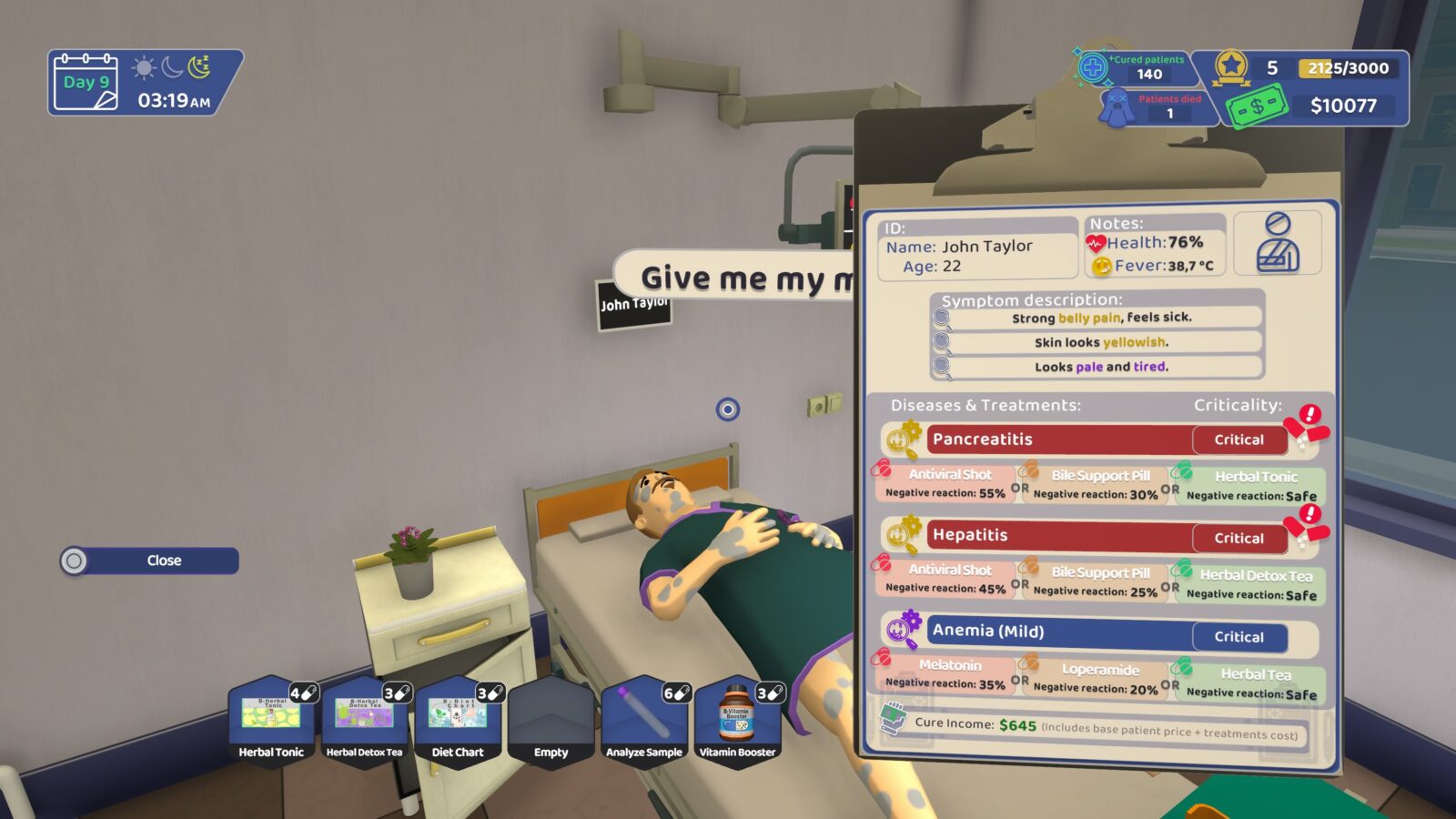 Nasz rola sprowadza się do zebrania probówek i włożenia ich do maszyny, witania i kwalifikowania pacjentów na oddział oraz dbania o zaopatrzenie, rozbudowa sal, zakup leków czy automatu do kawy. Ciężko rozwijać karierę w takim środowisku. Jedni pacjenci zdrowieją, następni przychodzą na ich miejsce. Krąg życia się zamyka. Przez pierwsze 3,5 godziny byłam naprawdę wkręcona w gierkę, ale nagle zdałam sobie sprawę, że teraz to tylko grind. Pacjent zamiast jednego czy dwóch badań próbek, jak to było na początku, teraz potrzebował nawet sześć. Konieczność latania po piętrach w celu diagnostyki wydłużała cały proces obsługi oraz kuracji. Chorzy potrzebowali coraz więcej medykamentów, których zakup podlegał limitom. Na dodatek najbezpieczniejsze preparaty kończyły się w tym samym momencie.